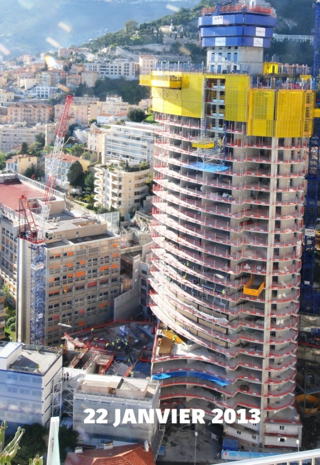 Construction d’une double tour de 170 mètres de haut, faisant d’elle la plus haute tour de la Principauté de Monaco. Elle comprend 256 logements dont 177 logement domaniaux, 70 logements libres (du 2 aux 7 pièces), 2 Sky duplex de 1.200m² et un Sky Penthouse de 3.300m² sur 5 niveaux, tous situés entre les 20° et 49°.